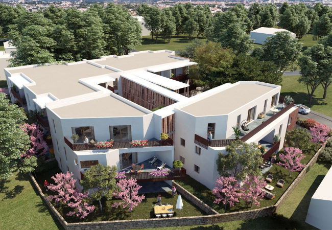 Cette résidence est tournée vers la nature avec son patio lumineux s’ouvrant sur un parc paysagé. L’architecture audacieuse laisse entrer la lumière naturelle. Les matériaux et prestations sélectionnés allient parfaitement esthétique, qualité et confort de haut niveau. Cette résidence intimiste de 2 étages vous propose 34 appartements du T2 au T4. Tous les appartements sont conçus avec de larges volumes, faciles à agencer et qui s’ouvrent sur de belles terrasses et jardins. Les places de stationnement sont sécurisées en sous-sol.